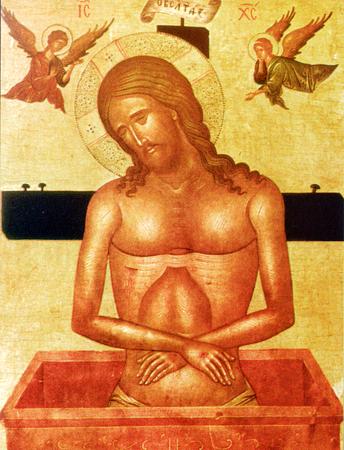 «Страшное и необычайное таинство ныне подлинно зрится: удерживается Неосязаемый; связывается Освободивший Адама от проклятья; Испытующий сердца и утробы (внутренний состав человека) беззаконно допрашивается, заключается в темницу Затворивший бездну; Пилату предстоит Тот, Кому с трепетом предстоят небесные силы; получает пощечины рукою создания Создатель; на [Крестное] Древо осуждается Судящий живых и мертвых; во гроб заключается Разоритель ада».