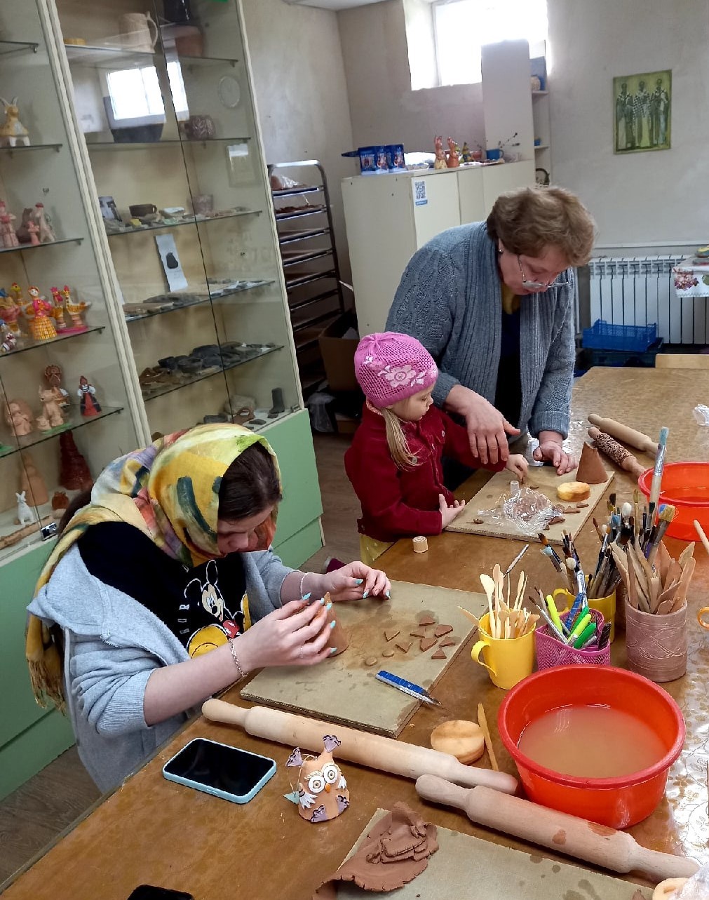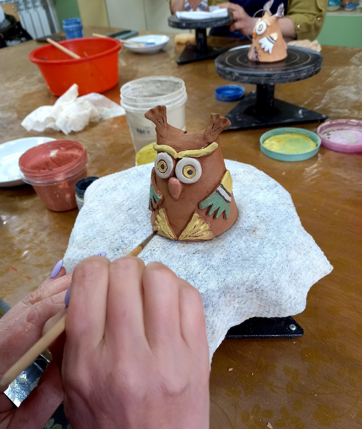 15 Мая (воскресенье) в Студии детского творчества "Гончарик" при Михайло-Архангельском храме (с. Новоживотинное) состоялся новый мастер-класс по керамическому творчеству в рамках цикла мероприятий "выходного дня". На очередной встрече под руководством народного мастера Воронежской области Натальи Борисовны Пророк и Ольги Алексеевне Ногиной участники изготовили колокольчик "Сова".