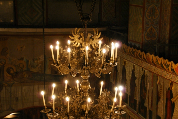 св. благ. кн. Мстислава), настенная роспись, паникадило, увенчанное двуглавым орлом (символом двойственности власти), сам дух собора придают ему особенную торжественность.