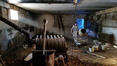 Несмотря на зиму строительные работы не остановились - организовано дровяное отопление. Сейчас проводится заливка фундаментов под внутренние перегородки в цокольном этаже школы, прокладываются трубы отопления и водопровода, подготавливается поверхность для изготовления стяжки по всей необходимой площади внутреннего пространства. В цокольном этаже предусмотрены следующие помещения: отдельный погреб площадью 21 кв. м, техническое помещение, учебный класс, где одновременно могут заниматься 2-3 группы учеников, площадью более 60 кв. м, учительская комната площадью 10 кв. м, санузел и рукомойники, лестничные марши.