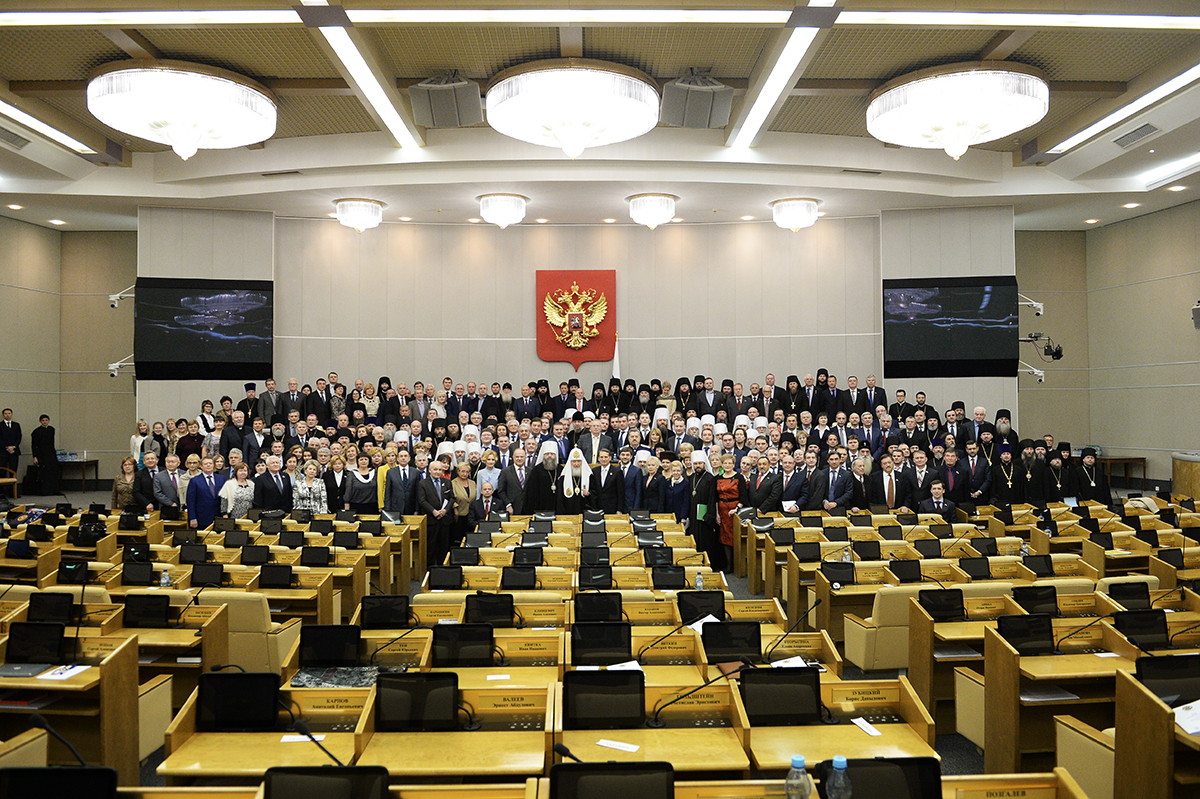 Сегодня впервые со времени начала работы в 1906 году Государственной Думы первого созыва и восстановления в 1917 году Патриаршества в Русской Православной Церкви Патриарх Московский и всея Руси выступает в зале пленарных заседаний Государственной Думы.